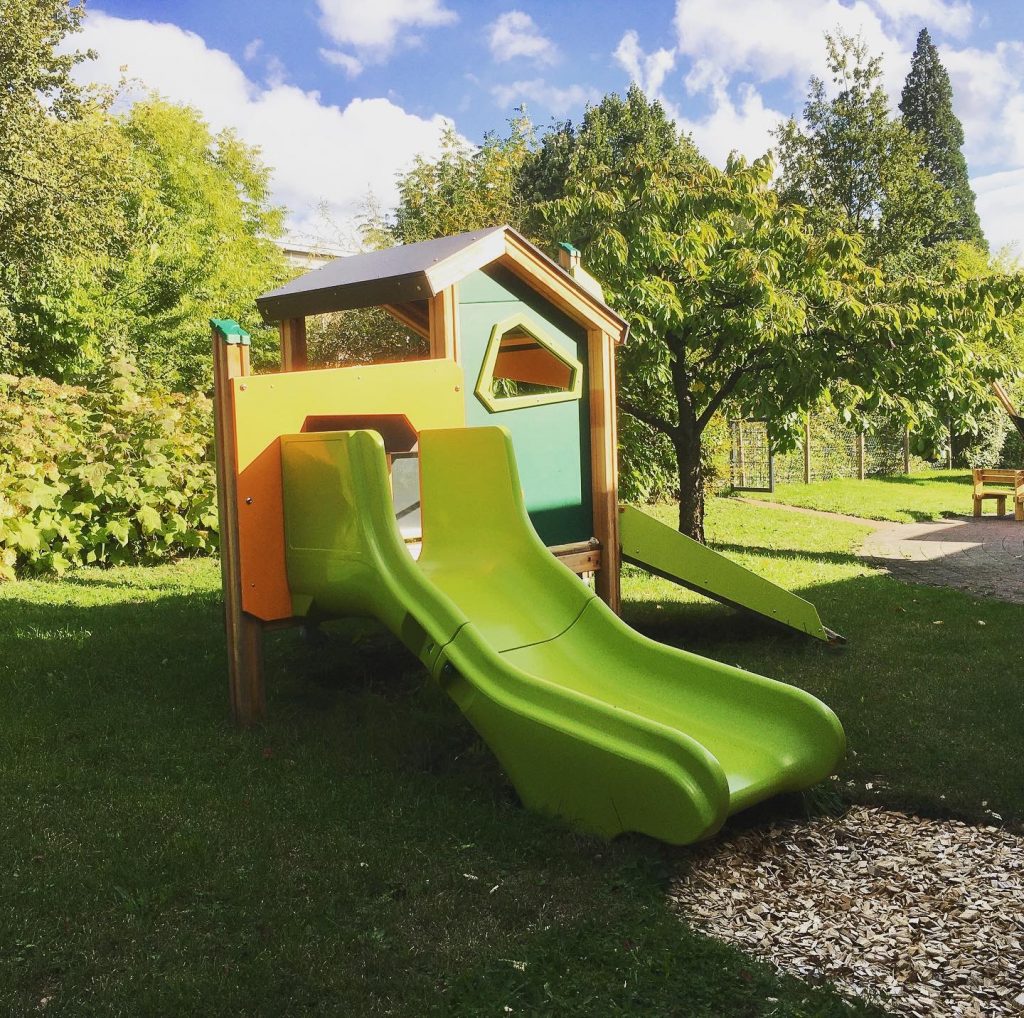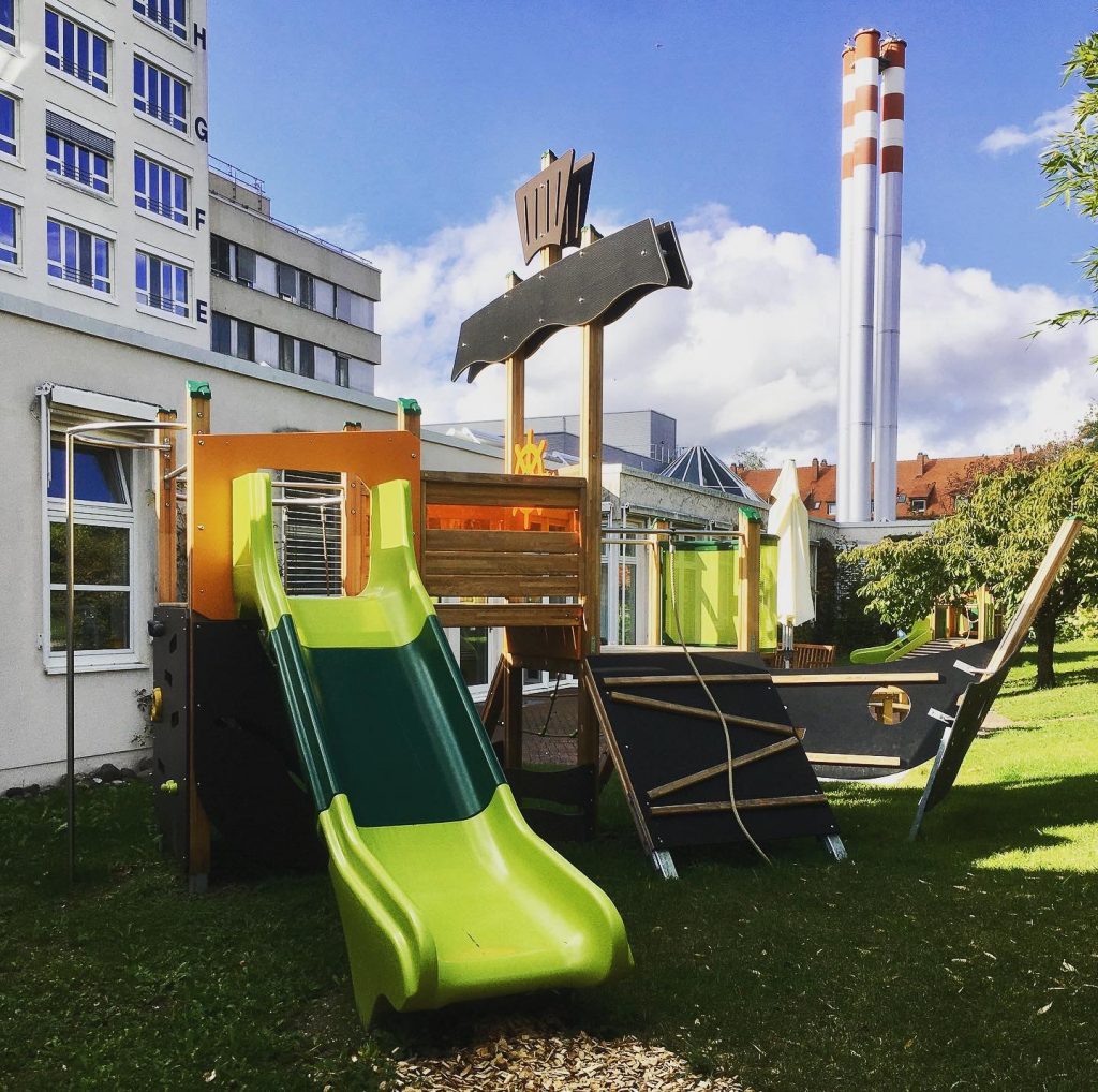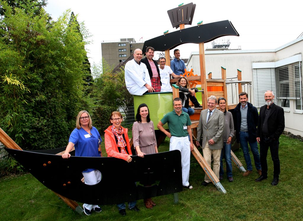 Im Sommer 2019 hatten wir die große Freude, den komplett neu gestalteten Außenbereich der Kinderklinik feierlich einzuweihen. Das bis zu diesem Zeitpunkt vorhandene Angebot an Spielmöglichkeiten und Aufenthaltsflächen war recht begrenzt und wirkte insgesamt etwas veraltet und nicht mehr zeitgemäß. Mit einer Vielzahl von modernen Spielgeräten, bequemen Sitzgelegenheiten und effektivem Sonnenschutz möchten wir nun gezielt dazu beitragen, dass der Bereich vor den Patientenzimmern zu einem einladenden und angenehmen Ort wird, an dem die stationierten Kinder und ihre Angehörigen sich gerne aufhalten, entspannen und rundum wohlfühlen können.