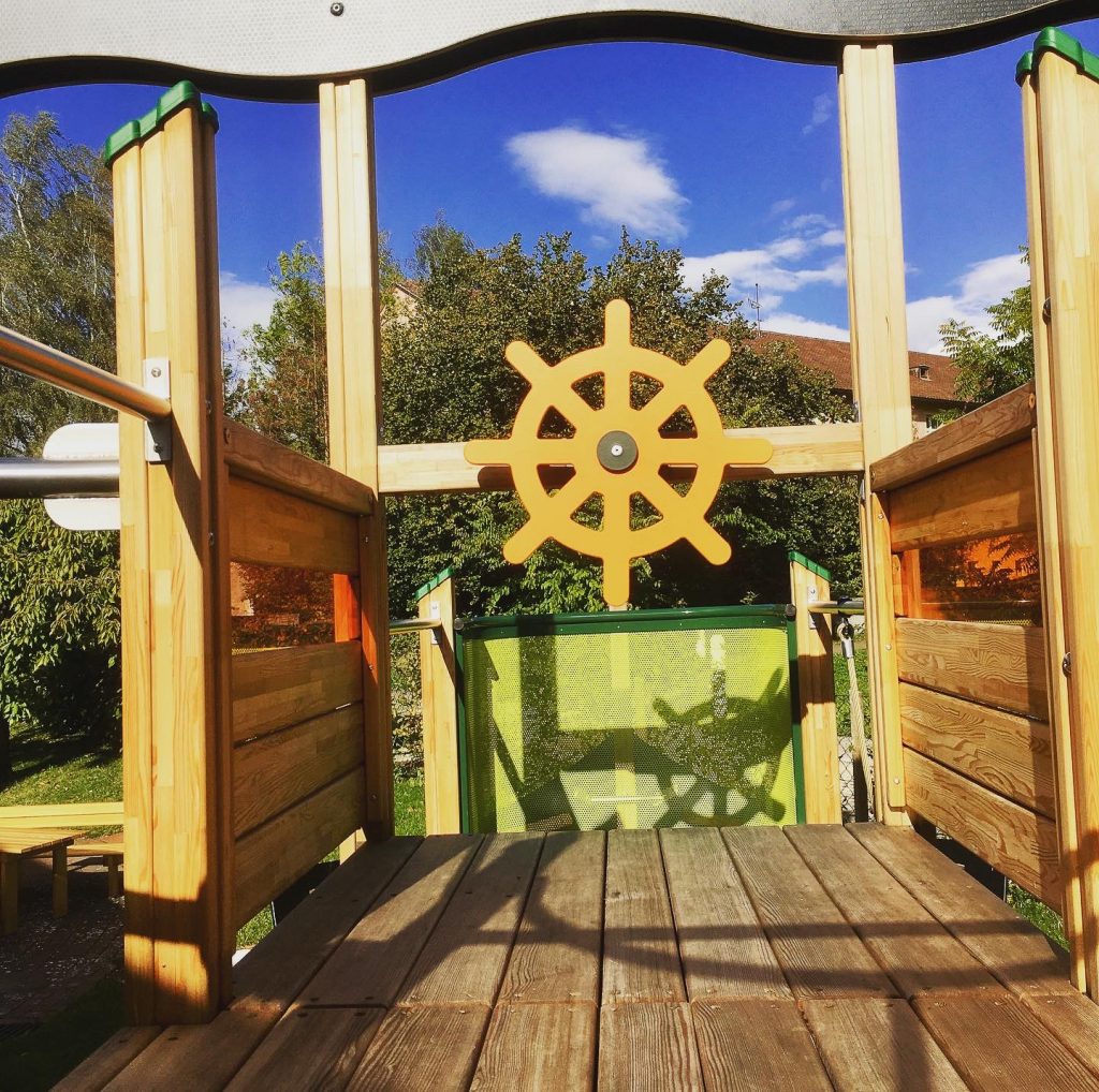 Das auffälligste und für die Kinder sicherlich auch spannendste Spielgerät im neu gestalteten Außenbereich der Konstanzer Kinderklinik ist das große Piratenschiff. Es zieht sofort alle Blicke auf sich und lädt die kleinen Patienten dazu ein, in fantasievolle Abenteuer einzutauchen und sich aktiv zu bewegen, wodurch der Aufenthalt im Krankenhaus für sie ein Stück weit lebendiger und fröhlicher wird.